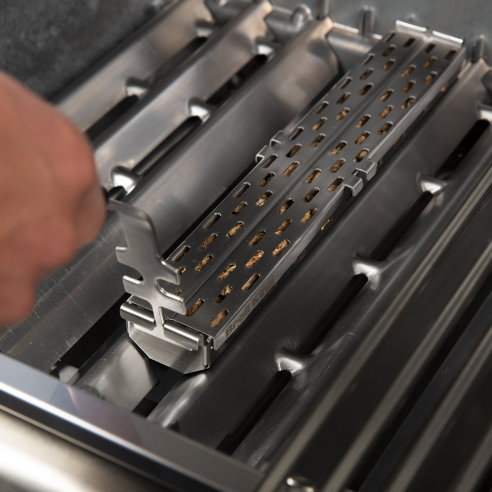 Füllen Sie die Smokerbox mit Ihrer Lieblingssorte Pellets oder Holzchips, platzieren Sie die Box auf dem Fav-R-Waves ihres Broil King® Gasgrills und genießen Sie anschließend den leckeren, rauchigen Geschmack, den Ihr Grillgut angenommen hat!