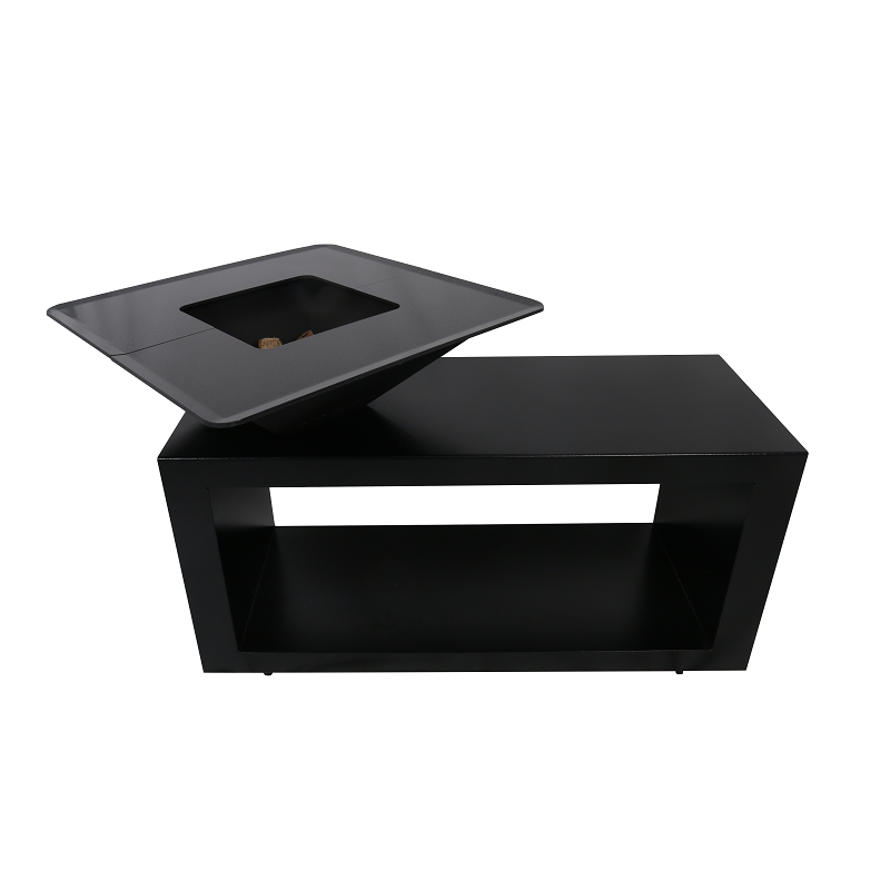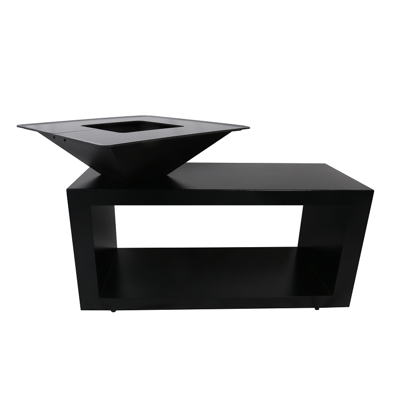 Diese Designer-Feuerstelle ist ein absoluter Hingucker auf jeder Terrasse. Verbinden Sie die Wärme eines Holzfeuers mit der Geselligkeit rund um das Feuer und das Grillen auf der Plancha.